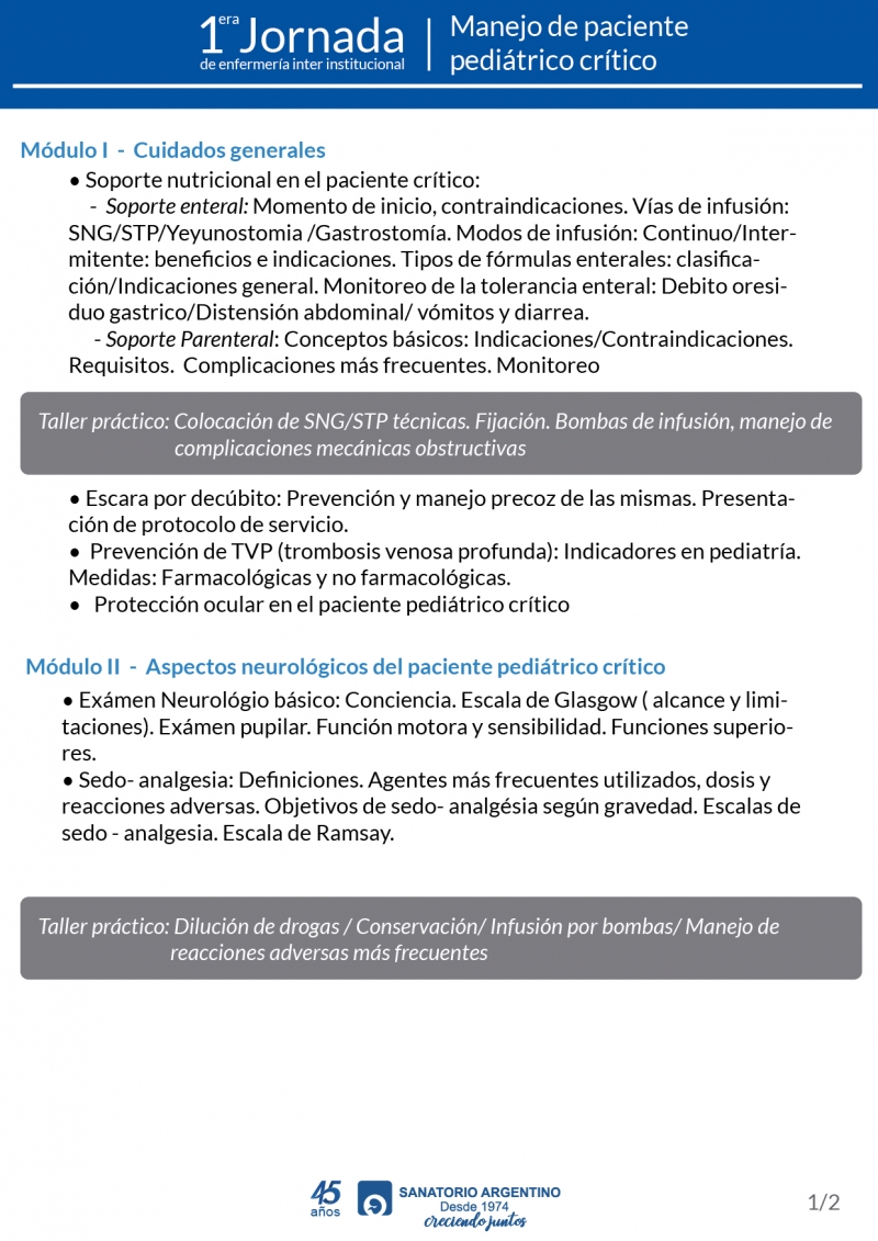 "Manejo de Paciente Pediátrico Crítico" es el nombre de la Jornada que busca reunir a gran parte de los enfermeros y enermeras de la provincia. La cita será en la Sala de Ateneos Julián Batistella, en Sede San Luis Norte de Sanatorio Argentino (calle San Luis 433 oeste).